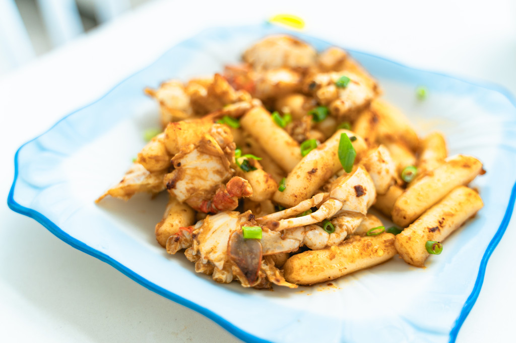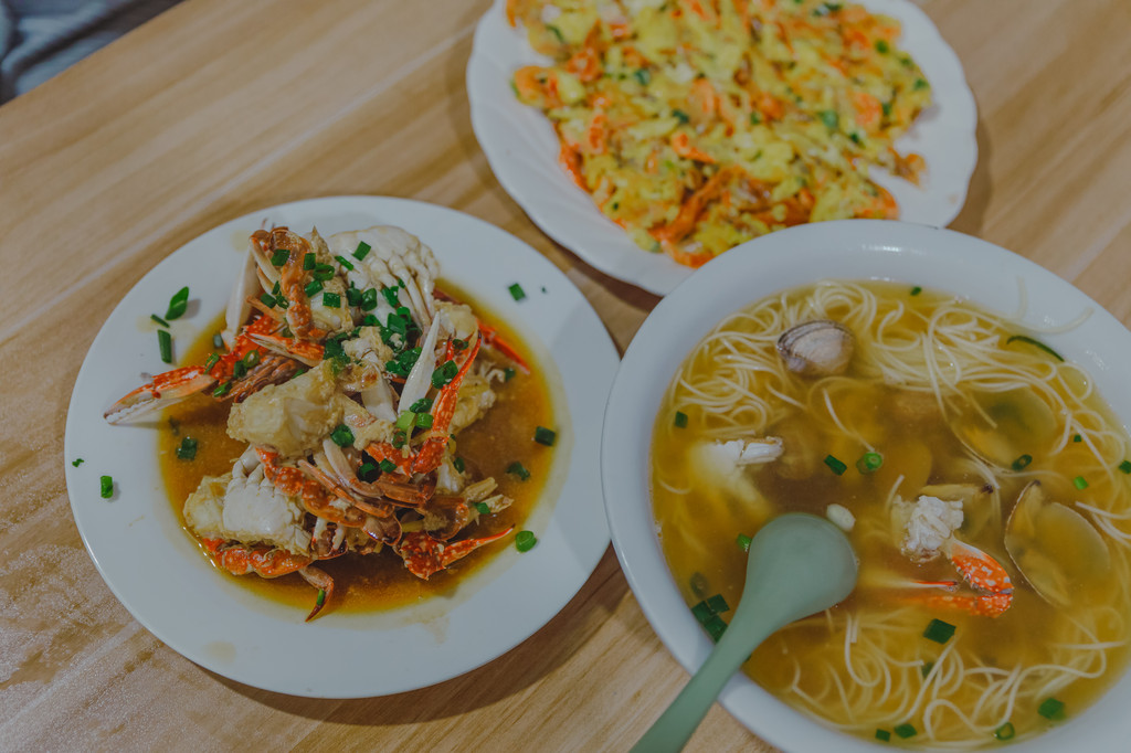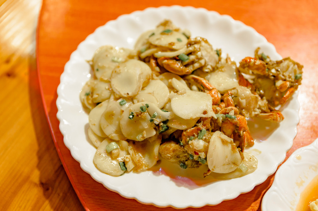 晚上吃了椒盐皮皮虾、梭子蟹炒年糕和海鲜面。海鲜面是来枸杞岛必须品尝的,每家餐馆的口味都不太一样,我觉得并不好吃,汤汁不够浓郁。