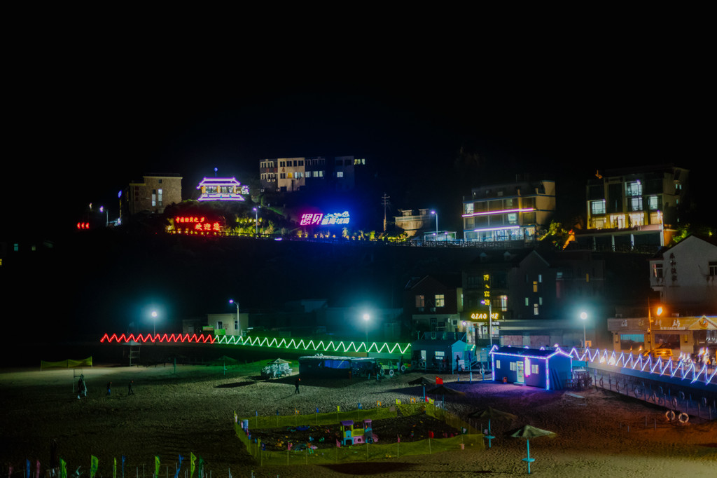 民宿就在大王沙滩旁边,晚上还能看到夜景。