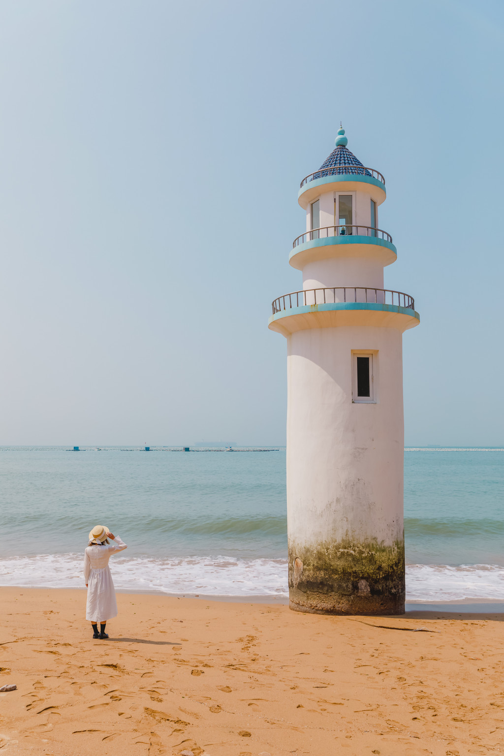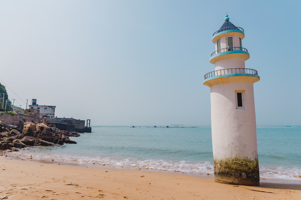 嵊山岛仅有的沙滩叫大玉湾沙滩,因为伫立着一座灯塔而成为了打卡景点。