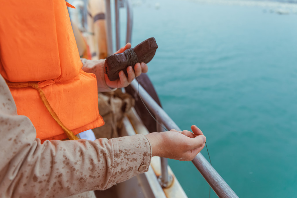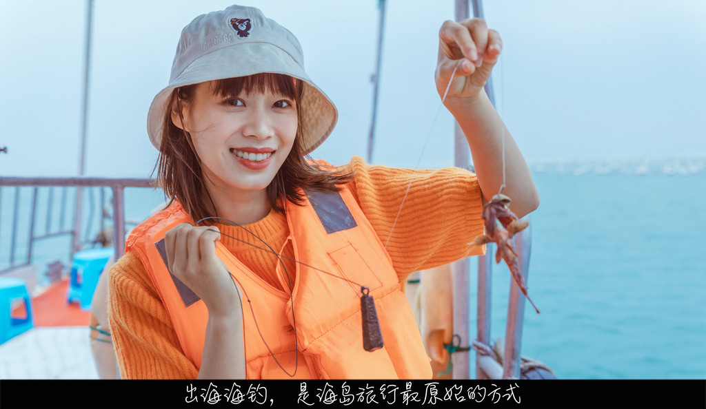 而现实特别接地气,我们坐的是普通渔船,没有鱼竿,靠着一条线和秤砣,把鱼饵沉到海底,渔民说这是最原始的钓鱼方法。我们开始还不敢相信这样就能钓到鱼,同船的游客让渔民先演示一下,没多久真钓到了,有点意思。