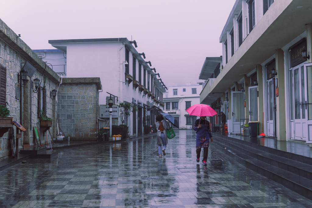 午后,下雨了,刚想说主街上空无一人,就看到几个岛民路过。
