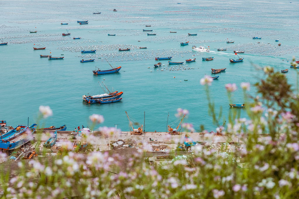 登上山海奇观,就能俯瞰大海,渔船、礁石、房屋、海上牧场尽收眼底,这大概就是“山海奇观”这名字给我最直观的感受。