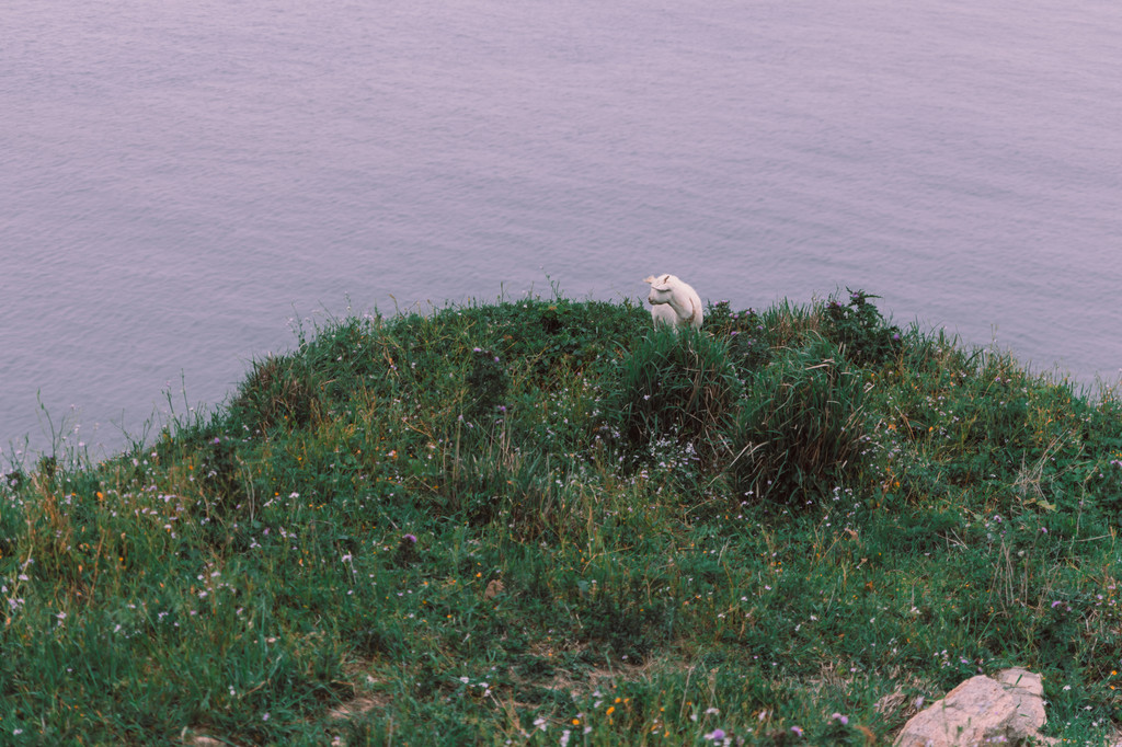 花鸟岛偶尔会看见几只野山羊,如果被岛民抓到,就会套上绳子变家养的。在海边悠闲地吃草,大概是它最幸福的时刻了。