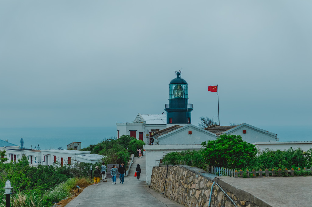 花鸟灯塔是岛上最适合看日落的地方,该灯塔建于1870年,由英国人始建。圆柱形塔身高达17米余, 标成上黑下白两道横纹。由于灯塔历史悠久, 故被誉为远东第一大灯塔,是亚洲第二大灯塔。