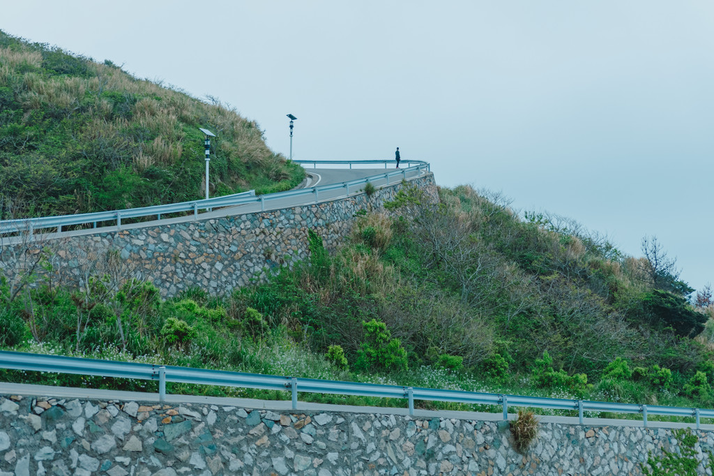 【拍照建议】:利用环岛公路的弯道,拍出延伸感。坐在路堤上,从正面、侧面拍。但是来往的车辆很多,一定要注意安全。