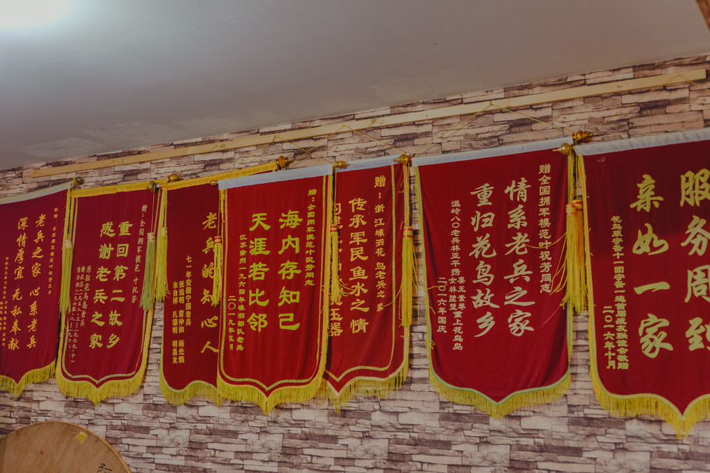 晚饭在老兵之家,这是一家很有名的餐厅。进门,就看到锦旗满墙。缀着“情深东海”、“海内存知己”等感激温馨的词,落款均为各地退伍老兵。老兵之家对老兵住宿是免费的,对普通游客收费也不高,一只小梭子蟹只要8块钱。