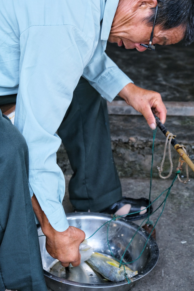 我在这里采风的时候遇到一位渔民大叔,他手里拎着一条7、8两重的野生大黄鱼。我问他这条鱼大概多少钱,他笑而不答。于是中午的时候我在餐厅就点了一条大黄鱼解馋。说不定就是他手里的那条呢?