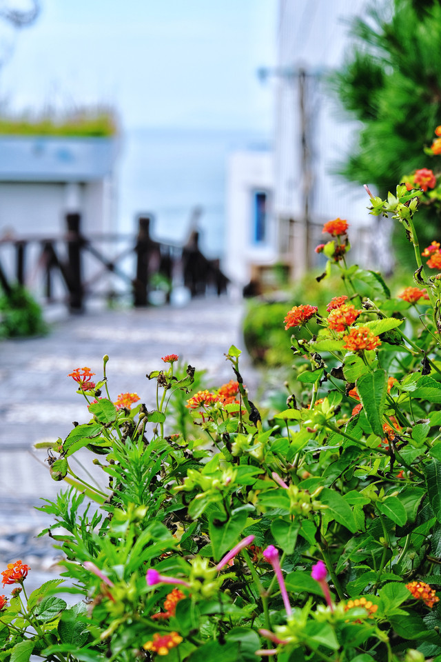 其实在小小的花鸟岛能去的地方并不多。在岛上盘根错节的小路上探险一番也别有味道。花鸟岛被誉为东方的圣托里尼,岛上的建筑大都被统一涂装成白色外观和蓝色线条。随处可见的花花草草、精致民宿都是拍照的绝佳素材。