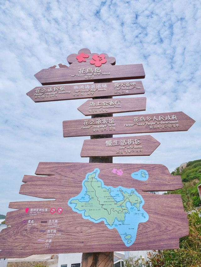 下船之后会有游览车来接你,会送你到民宿附近。岛上的活动范围很小,走路基本都在二十分钟之内。不同于枸杞岛,这里没有出租车、电瓶车,甚至连自行车都没有,除了去灯塔需要在游客中心坐车之外,其他地方都只能走路前往。由于买船票的时候已经支付了85元的门票,所以岛上所有的景点和沙滩都不用再买票。岛上有一条主干道,所有的餐饮、购物几乎都集中在这条路两边。花鸟岛的主要景点只有两个:佛手石和灯塔。其他还有几个值得一去的地点我下面都会列出来。