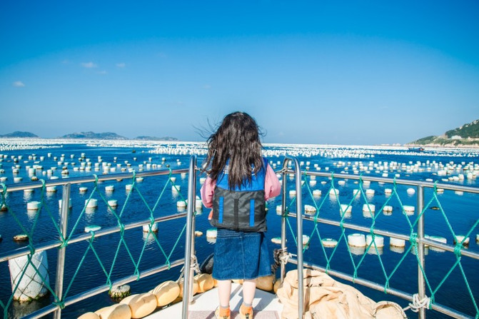 后来,学了潜水以后,才知道有一种毒,叫蓝毒,望着蔚蓝的大海,我深深地被这样的蓝色吸引着,视线无法离开。艘艘渔船在静止在海面上,在白色浮子间捕获海鲜,这大概就是海上牧场的魅力。