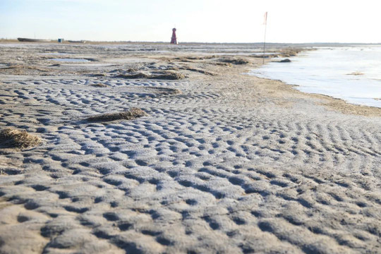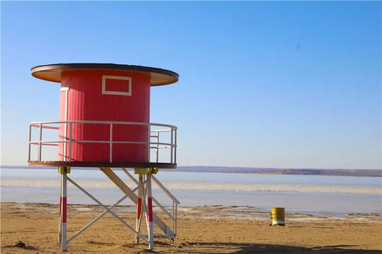 此时的红碱淖,已经摇身一变成为冰雪世界。在寒风凛冽中,湖冰是冬天赐予的独特礼物。