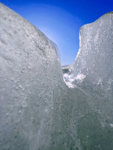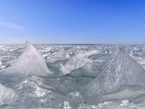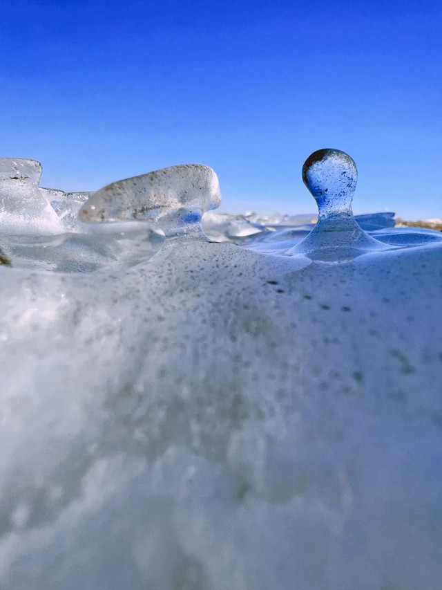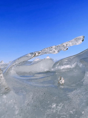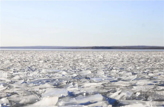近岸,层层叠叠的冰块,如万仞直立,晶莹剔透。可以看出,这个冬天湖水和湖冰这对孪生的兄弟,有过怎样的博弈。