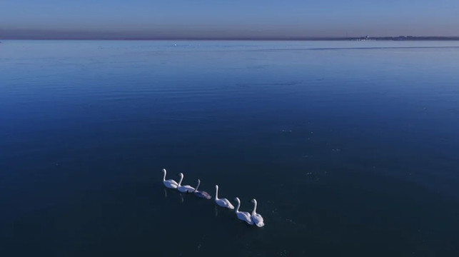 冬日,在红碱淖湖畔,常能看见一群“芭蕾舞者”——白天鹅,这些精灵在此聚集过冬栖息,也成为了红碱淖一道靓丽风景线。