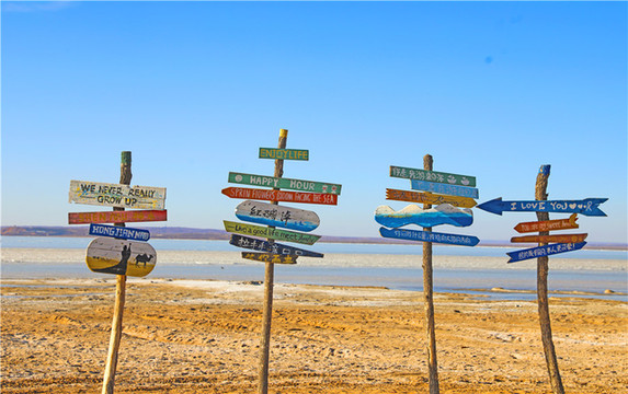 冬天装扮了浪漫的童话,在阳光的映照下,湖冰上的码头、路牌,都投射出了纯真的美好。