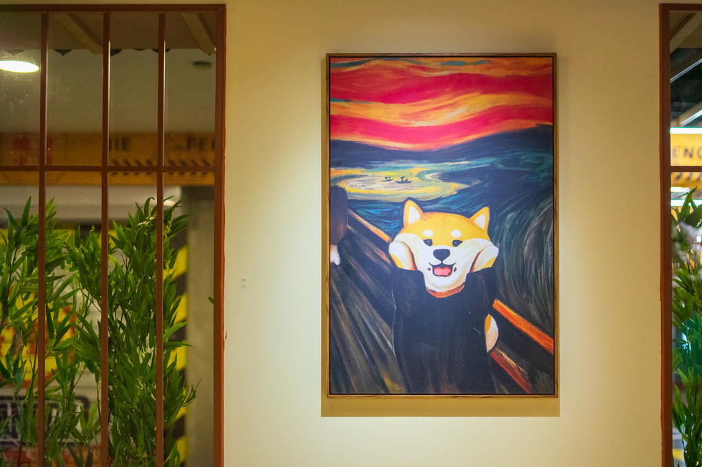 店里装饰也蛮特别,最有特色的便是以狗狗为主题的世界名画啦!狗狗版的《蒙娜丽莎》、《呐喊》等,令人忍俊不禁。