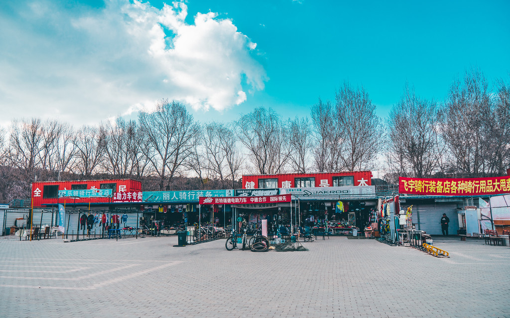 公园附近还有一处健身基地,不仅有房车露营的营地,还有各种骑行用品售卖。在这里闲逛的时候,遇到了好几个骑着单车呼啸而过的骑行爱好者。