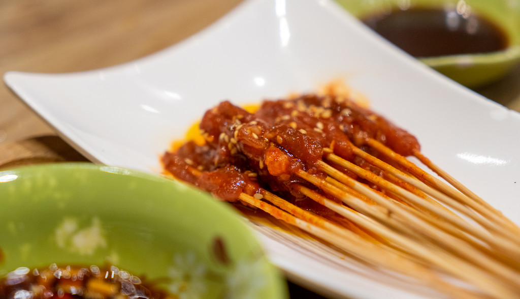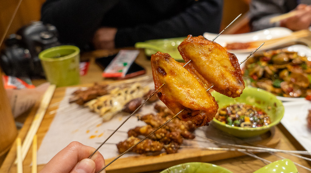 这也是沈阳最火爆的串儿店之一了,愣是排了快半个小时的队才坐好。招牌的油边、鸡架都点上,再在菜单上随手来几道,反正闭着眼点都不会出错。