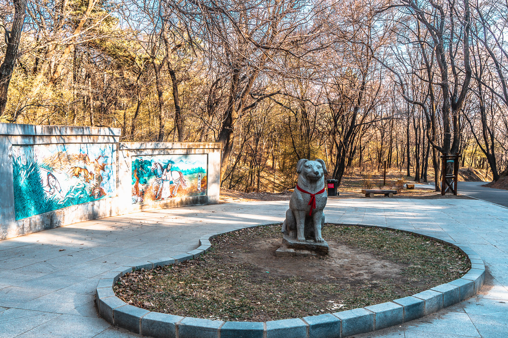 公园里这只狗狗的雕塑,便是来源于一个“义犬救主”的传说,据说努尔哈赤被明朝总兵李成良追杀火烧,他身边的黄狗为了救他,不停打湿身体往返河边,最终累死在努尔哈赤身旁。努尔哈赤令后代禁食狗肉,也不用狗皮制品。