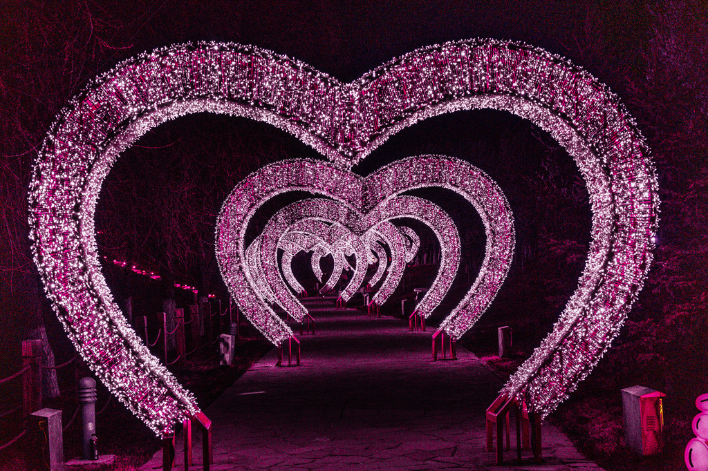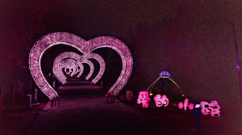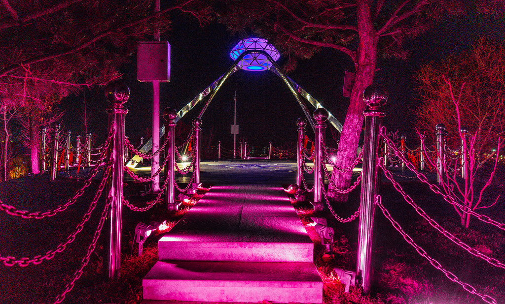 走上这条粉色的“爱的小路”,连单身狗都能感受到爱恋里的那种甜蜜与喜悦吧。从小路旁拾级而上到观景台,便能俯瞰不远处的城市夜景。观景台上的爱情锁,在灯光下熠熠闪光,这样的浪漫,让夜晚的心变得更暖。