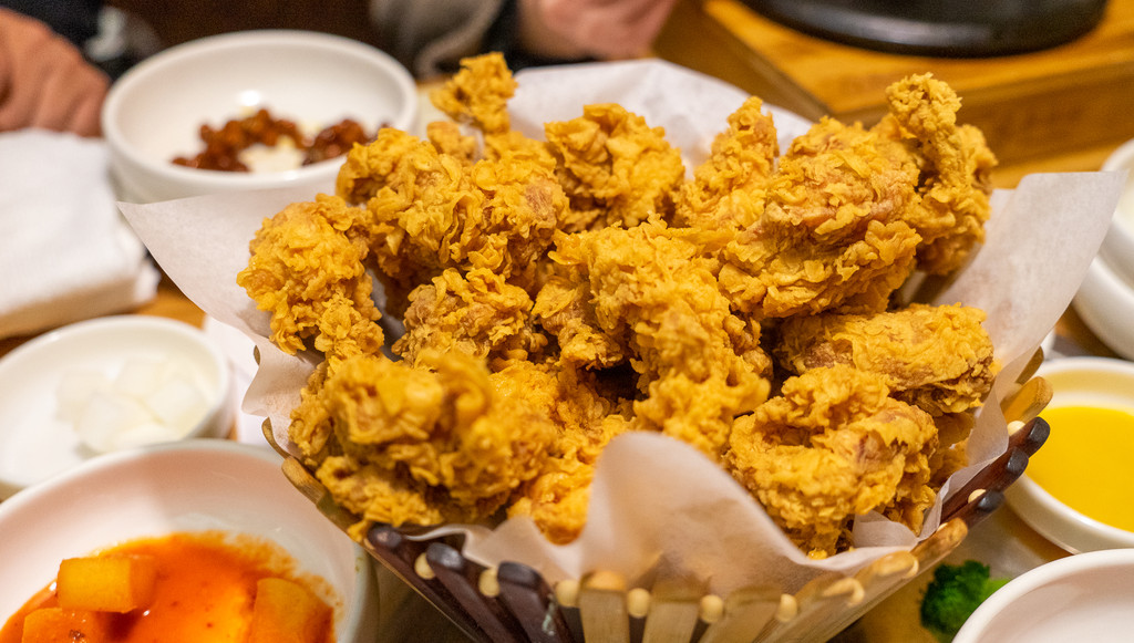 在沈阳吃的大张旗鼓的还有一餐万寿参鸡汤。各点一份招牌的参鸡汤,再来个两吃的炸鸡和海鲜葱饼,完美搭配。