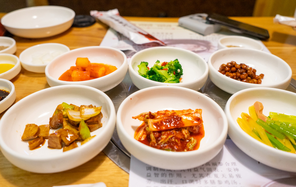 足量无限续添的小菜已足够震惊,第一次正儿八经吃参鸡汤的我,扒拉出鸡肚子里的糯米时超幸福,像极了找到了宝藏。哈原来参鸡汤是这样吃的呀。