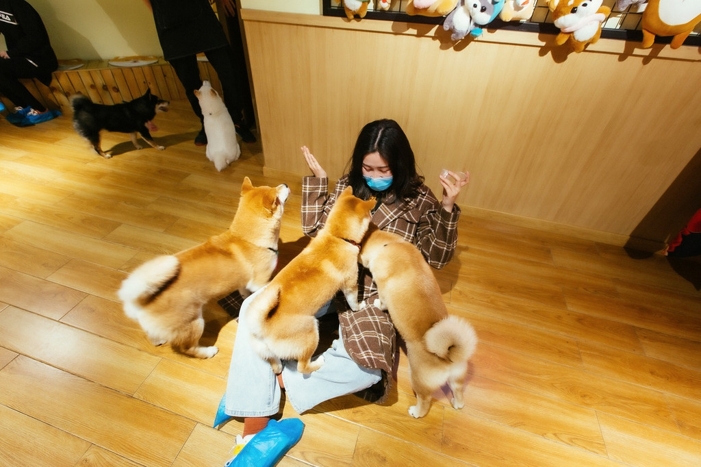 去“网红”咖啡店打卡,跟一屋子柴犬玩作一团。
