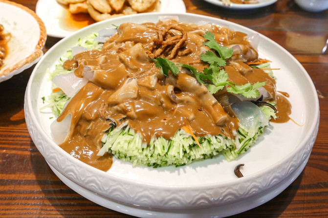 五彩拉皮:无论是星级酒店的餐厅,还是老字号的餐桌上,都有这道必不可少的五彩大拉皮,解油腻,爽口开胃。
