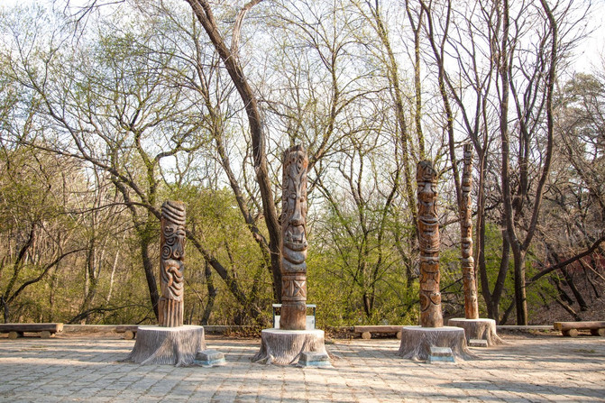 继续前行就是图腾文化广场,还有报恩寺,古城墙等景点。初春的郊野透着勃勃生机,阳光洒落了一地,午后的阳光是如此的温暖。
