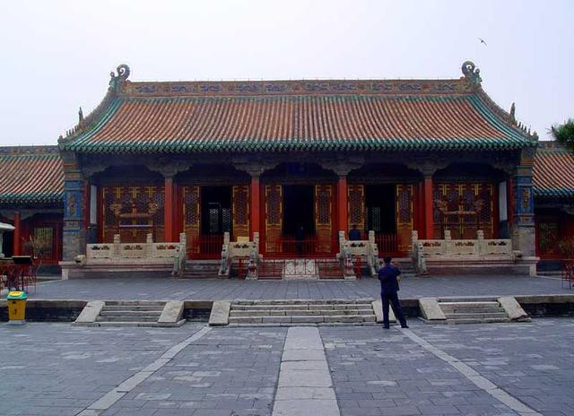 此殿是清太宗日常临朝处理要务的地方,公元1636年,后金改国号为大清的大典就在此举行。崇政殿北首的凤凰楼,三层,是当时盛京城内最高的建筑物。