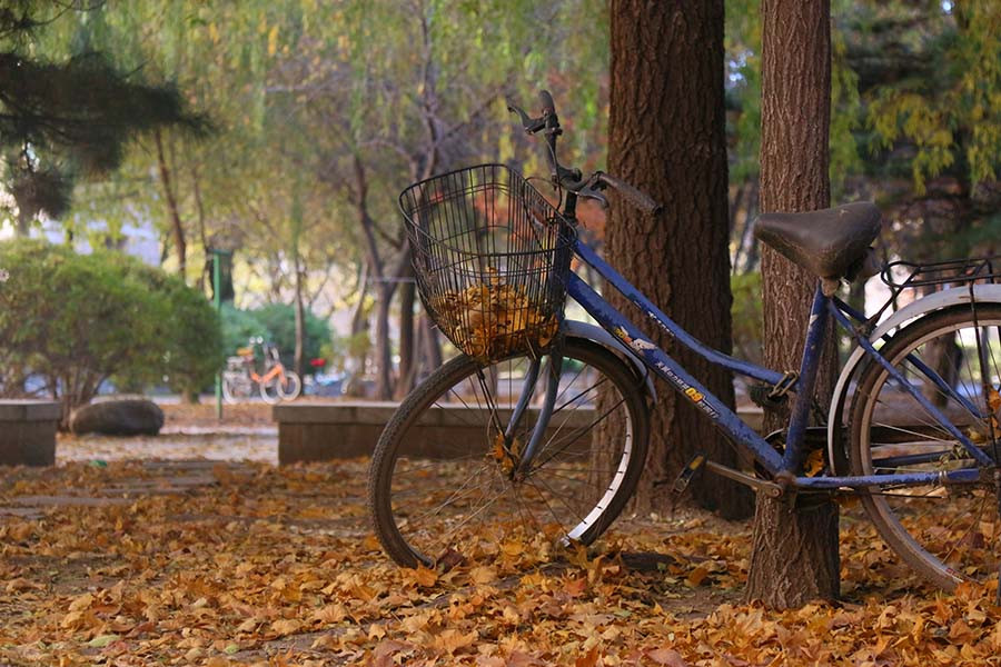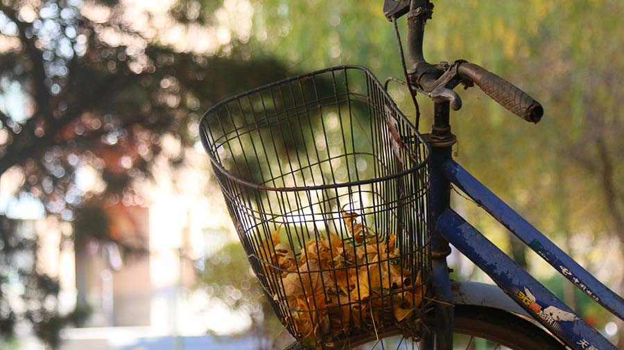 校园的很多细节透露着朴实的气氛,很多细小的地方就会非常吸引人,这里跟繁忙的都市不同,在这里更多的是放松和郎朗的读书声和对于学习向往的人在从中奔波。这是我无意中在校园内看到的医疗老实自行车,看来已经很久没有人去骑,车筐内已经有很多的落叶,不知道这辆车在这里呆了多久,好像我们的人生一样,不知道要停滞多久,但是留在这里或许可以看到更美的景色。