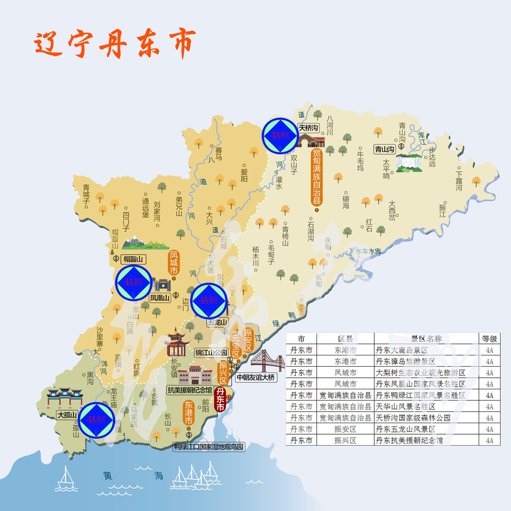 交通信息:丹东站至凤凰山国家风景名胜区,自驾用时:54分钟,里程:55.8公里。