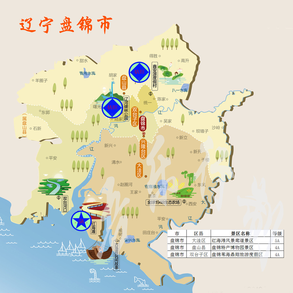 交通信息:可以通过盘锦旅行社的景区直通车从盘锦市抵达景区。自驾用时:1小时9分钟,里程:47.4公里。