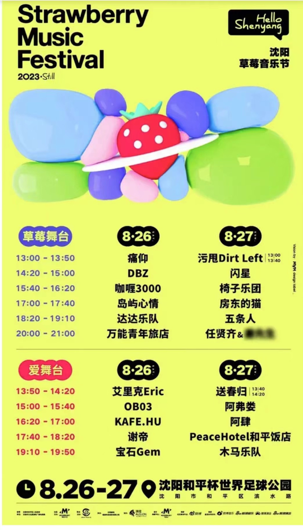 动机:热爱乐队的我们看到沈阳草莓音乐节的阵容,有喜欢的万能青年旅店、五条人、房东的猫、痛痒、达达和椅子乐团等,立刻被吸引,买票订酒店,走起。