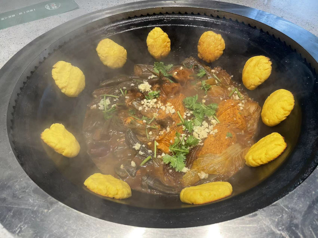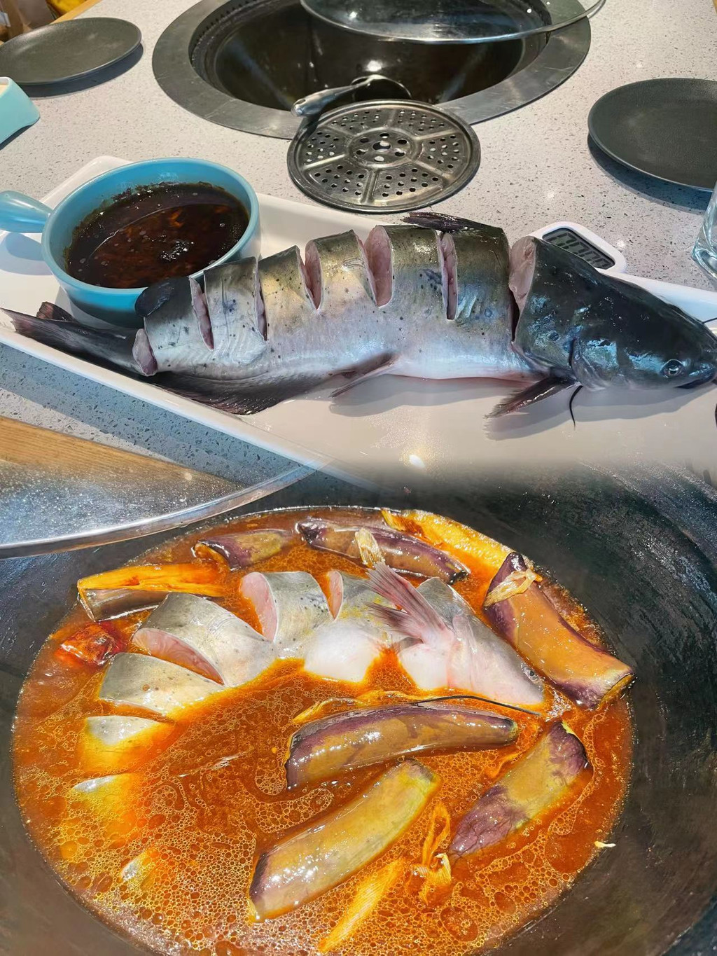 午饭团购的双人餐铁锅炖鱼148,吃撑。(为啥吃炖鱼没有吃大鹅、排骨啥,因为听司机推荐的。)(温馨提示再次上线:提前电话商家付定金,然后锅子给你提前炖起来,不然就会像我俩,饿着肚子等了40分钟)