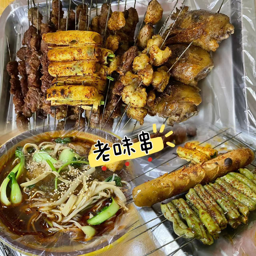 睡个午觉,外面下雨了,夜市逛不了,直接打车去吃烤串。(一段小插曲:博主推荐的是眼镜烧烤,吃完我看到师傅没有戴眼镜,然后在隔壁的隔壁看到眼镜烧烤,博主可能也是没搞清楚,吃的是眼镜,最后告诉大家搜老味串。)还好就是老味串不难吃,鸡头和麻辣烫推荐,不然我要纠结难受了。