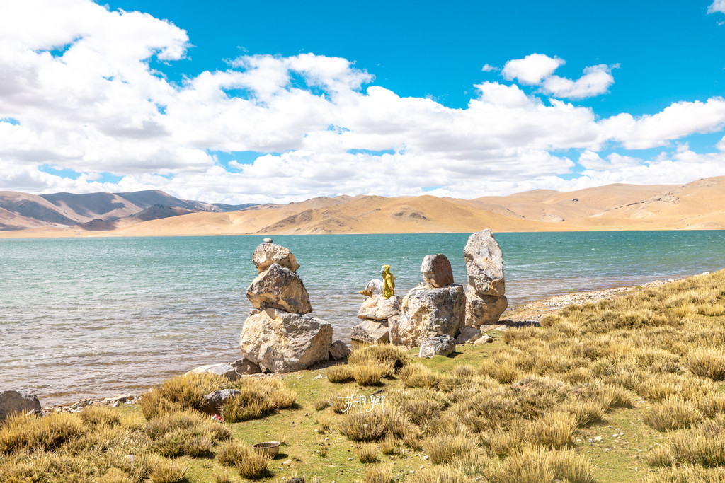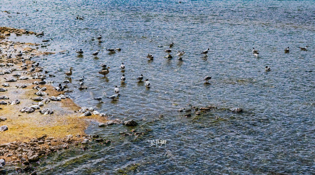 寺庙面朝大湖(地图上对这片大湖并无湖名显示,估计是一个无名湖),湖畔有几块大石头。平平无奇的大石头却是我发呆的最佳位置,坐在石头上,迎着湖风,看不认识的飞鸟和野鸭在眼前不断往来,我真觉得——申扎的风景是需要沉静下来去感受的。