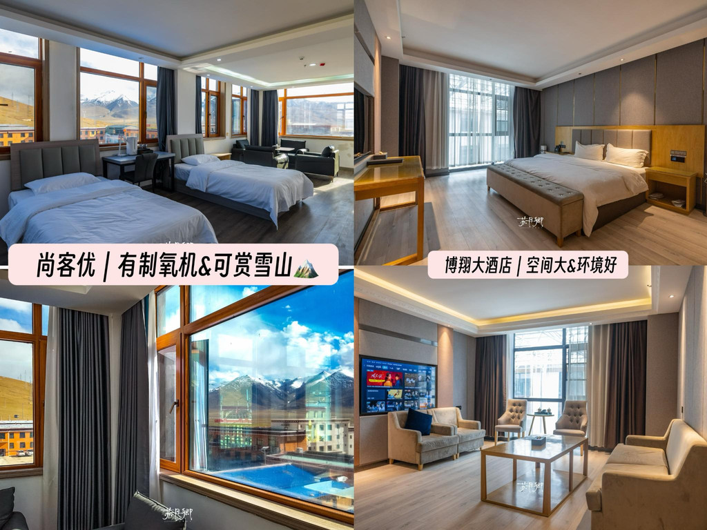 申扎县城虽然不大,但酒店不少,住宿条件也不错(尚客优、博翔大酒店等),博翔大酒店的客房环境很好,但不提供制氧机;对比之下,我个人推荐尚客优,不仅提供制氧机,周边茶馆很多;