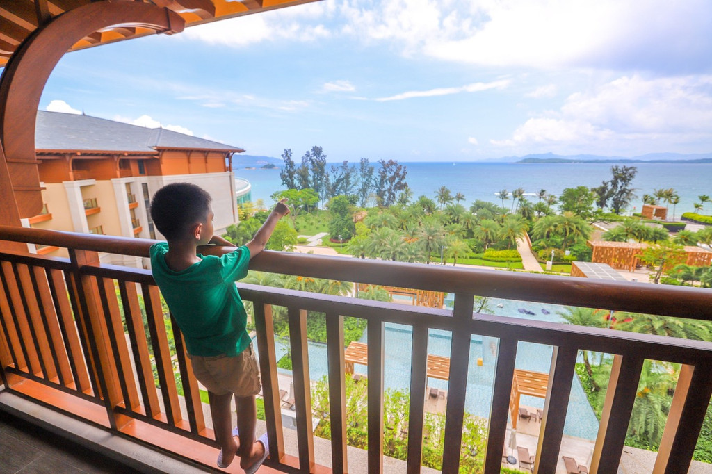 能让孩子安静下来的,除了电视节目,就是大浴缸的沐浴时光。落地玻璃前放置着设计感十足的浴缸,躺在浴缸里就能领略窗外的金 沙湾 的景色,享受不一样的度假体验。