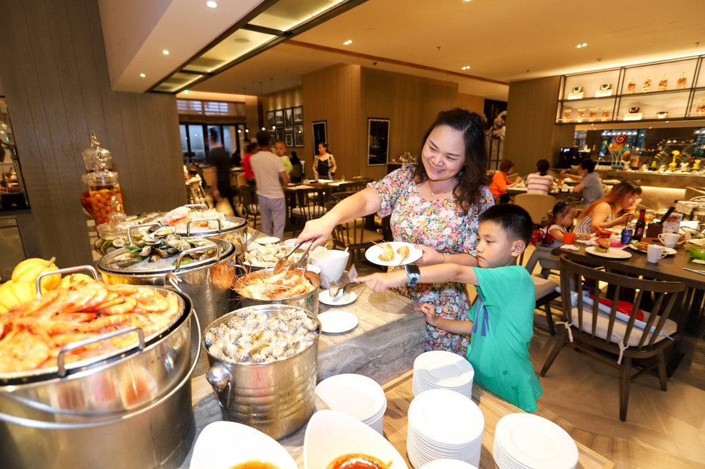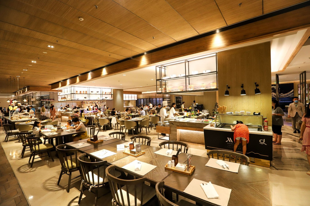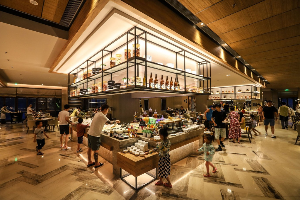 金沙全日餐厅是酒店三间餐厅中面积是最大的,采用自助餐形式 ,它有各种儿童专属系列美食和设施,可以让孩子在这专心用餐、尽情玩耍。