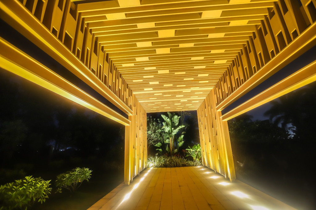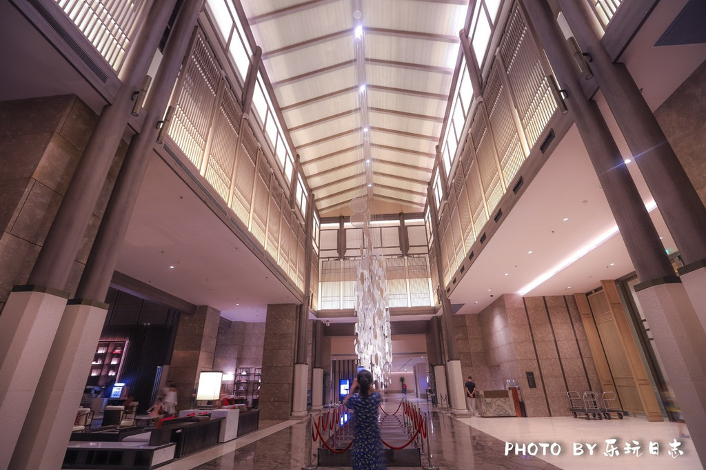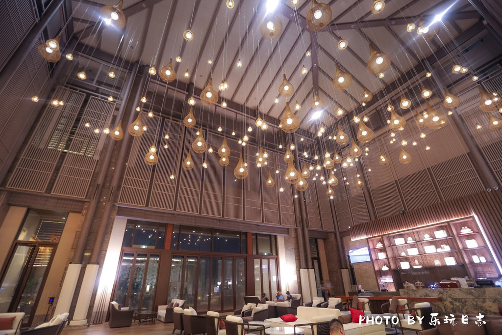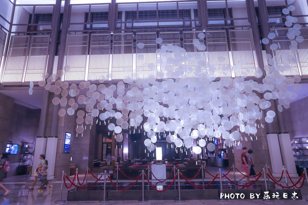 回到酒店大堂,则能感受到装修风格传统文化与现代艺术碰撞之美,大堂选用了暖色亮丽的灯光构筑,高悬的球状灯泡,几何形态的装饰,打造出一种让住客非常惬意的度假韵味。