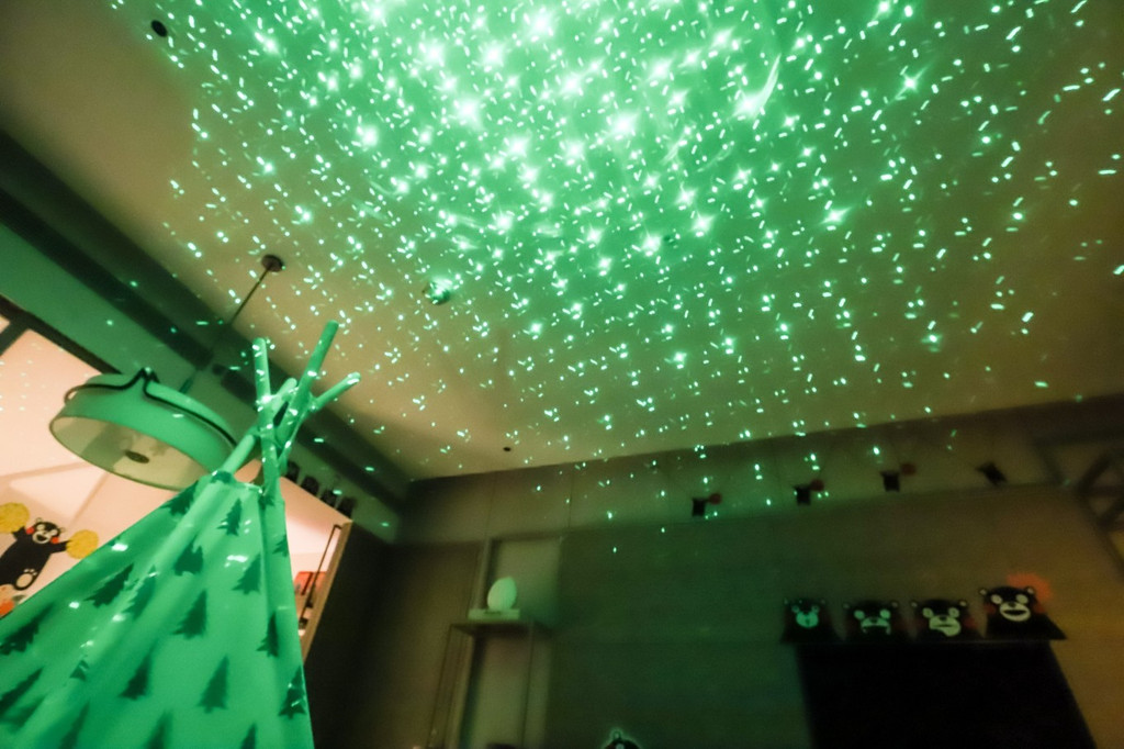 将房间内所有的灯熄灭后,会发现一个小秘密。就是设计者为小朋友们特别营做的梦幻星空。
