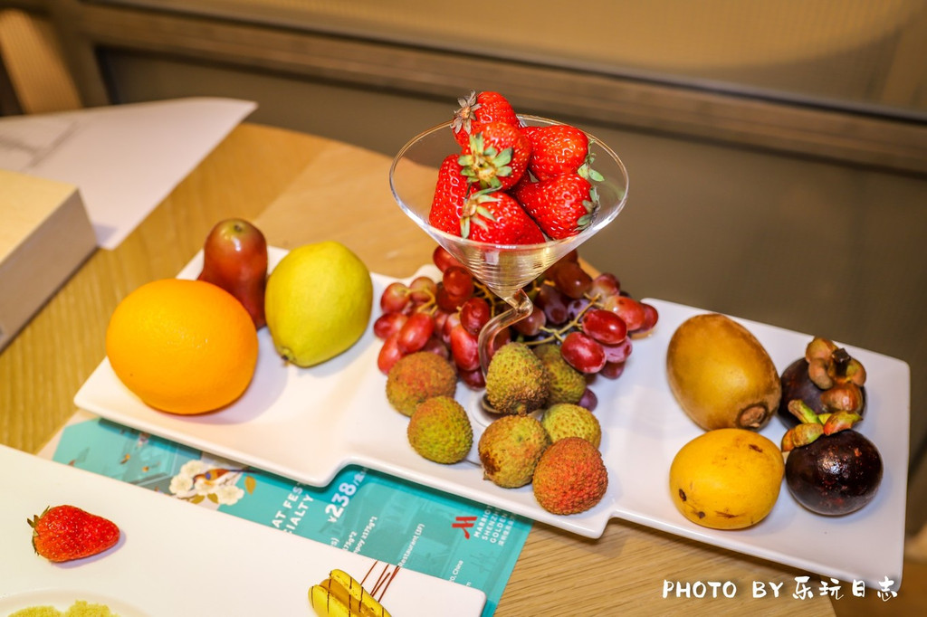 套餐是四人份的,包括了一个水果拼盘、3杯鲜榨果汁和一壶红茶组成。