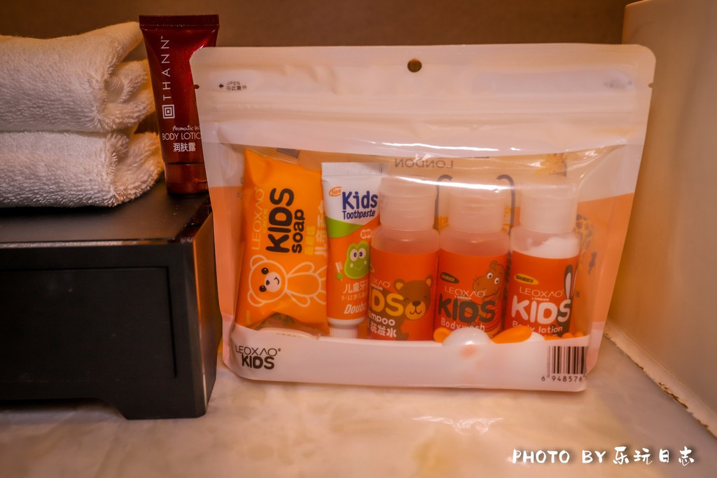 酒店为儿童还准备了专属的旅行洗护用品。内有 熊本 熊香皂, 熊本 熊牙擦,然后洗头水是花香型的,很淡雅,舒适度也很不错。