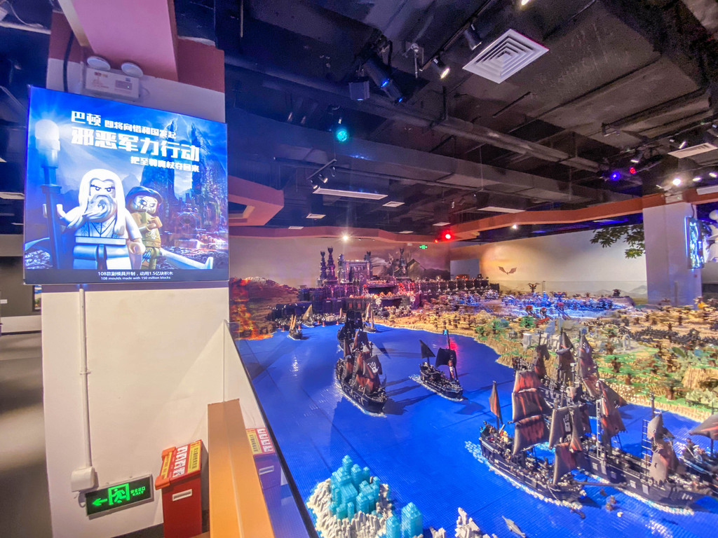 据说场馆里所有乐高模型都是老板让人从外国一个一个带回来再陈列到一起的,而且仔细观察还能发现,除了陈列的建筑,墙上的挂画竟然也是乐高拼成的,对于老板,我是深感佩服。