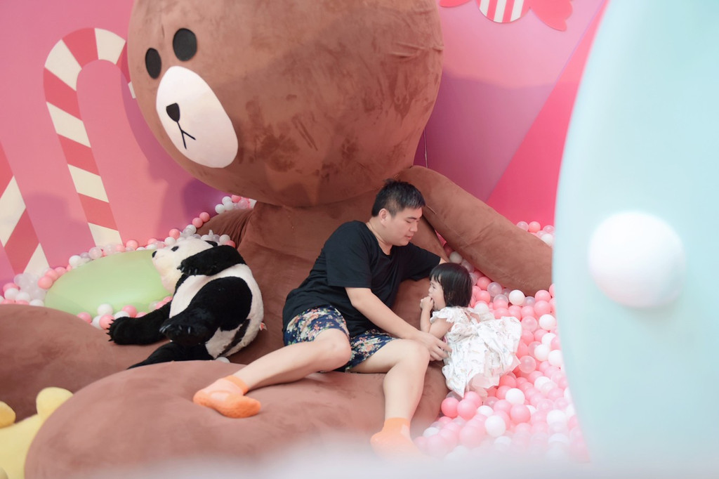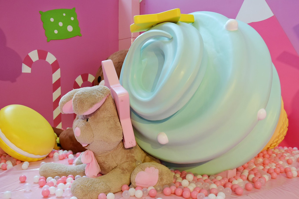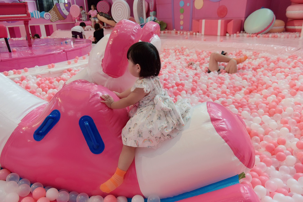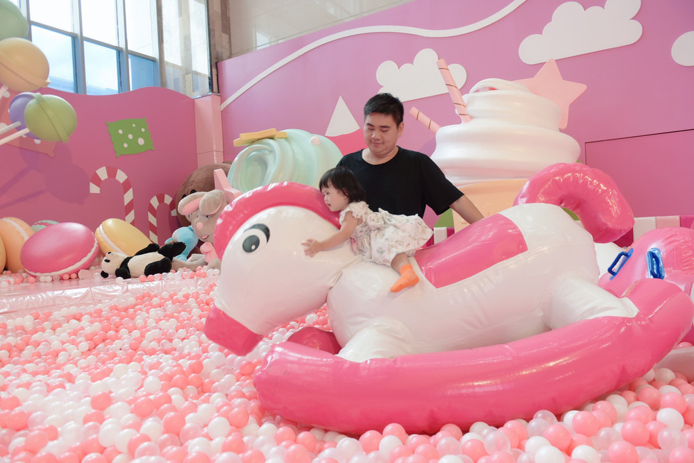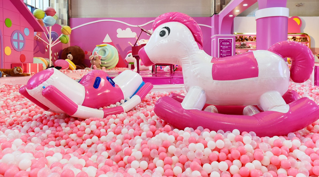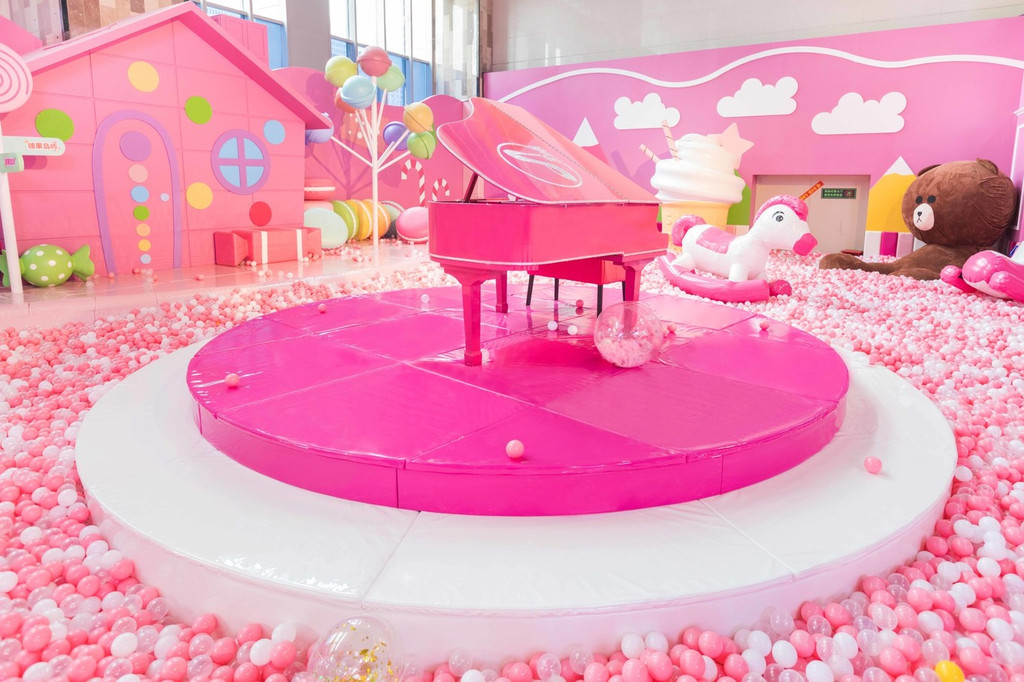 当然,最吸睛的还是这个少女心满满的粉红梦想馆啦,满足女孩子们童年里对于“美”这件事的所有幻想。那些洋娃娃、冰激凌、甜甜圈、充气木马都是不错的拍照道具,可以尽情留下欢乐的瞬间。当整个人躺在波波池里,仿佛化身公主,成为全场的焦点。