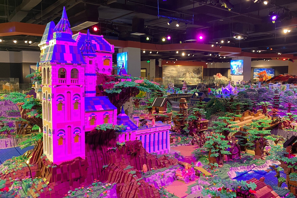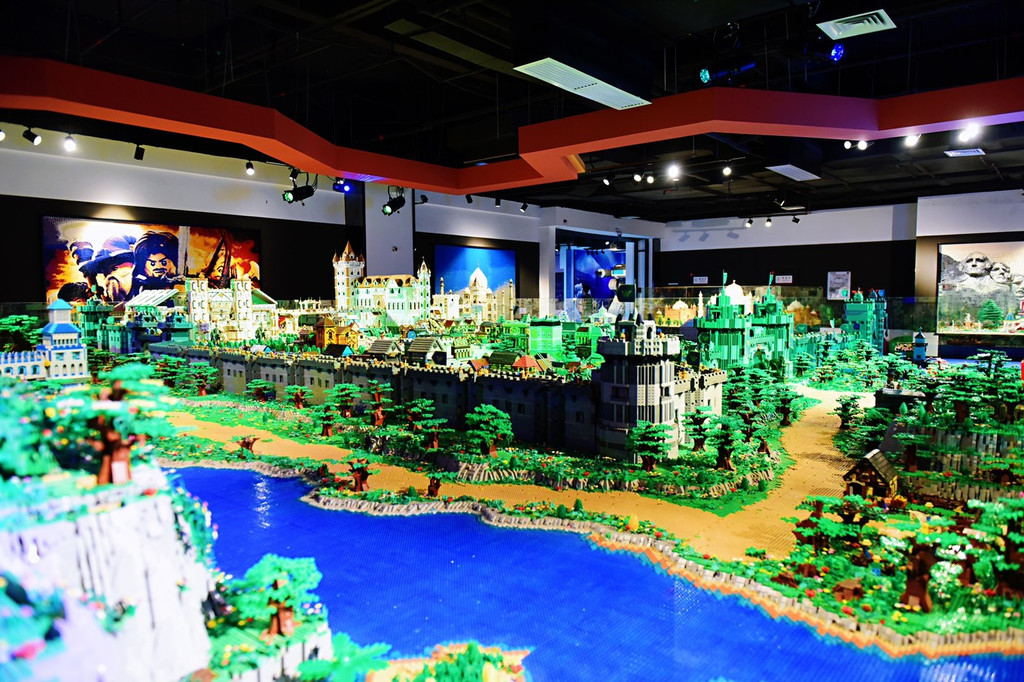不知道有多少人喜欢玩儿积木呢?积木是一个非常考验耐心的项目。这里大概是我见过规模最大的积木世界了,神奇又魔幻的场景,吸引着每个人的眼球,不停的发出“哇!好美”的赞叹感。据说全世界最大的积木沙盘就在这里,面积足达500㎡,是整个展馆的精粹!耗时3年拼成由28位积木设计师用2.5亿颗积木一点点拼成。
