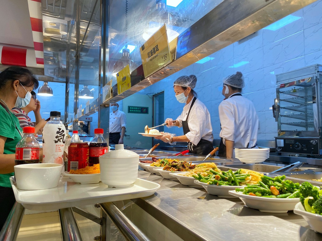 这外面放置的食物都是模型,但看着都很逼真,让人忍不住动一筷子。