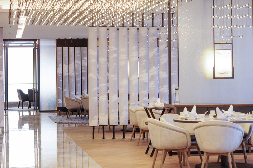 来一场云端的美食盛宴,餐厅位于酒店的顶层(58层),简约明朗的餐厅设计,让人进来就耳目一新。