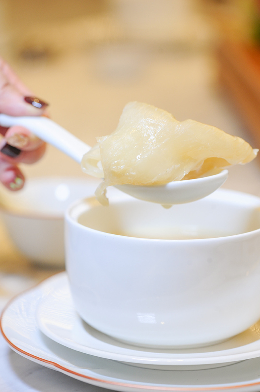 这个汤我真想给一百分,花胶汤的浓郁,无可比拟,是粤菜经典中的老火汤功力,一碗汤,就体现出师傅的厨艺深厚。鸡蛋那么大的花胶不知道你又试过没有呢。这是对于 广东 人的挚爱必推之一。
