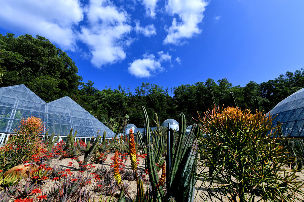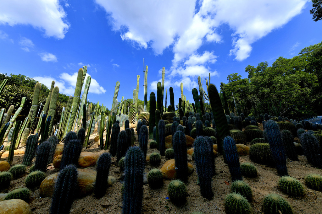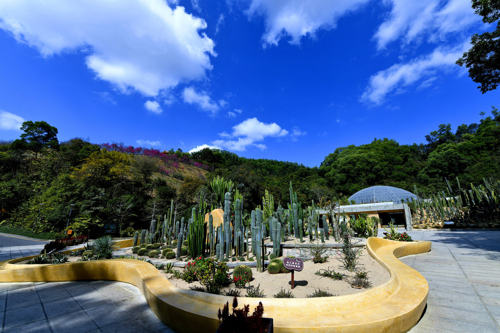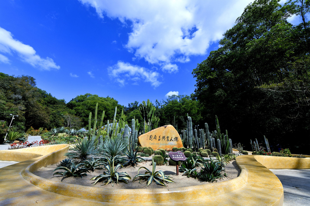第三处是仙人掌与多肉园,里面分为三部分,亚洲馆充满异域风情,里面种植了各种各样的芦荟等植物,非洲馆则呈三角形,里面主要是非洲植物,仙人掌和仙人球专区在最前面,造型是一个圆形,也很特别,种植了一些热带的非洲植物,如胭脂仙人掌、仙人球、非洲霸王树等多肉植物。